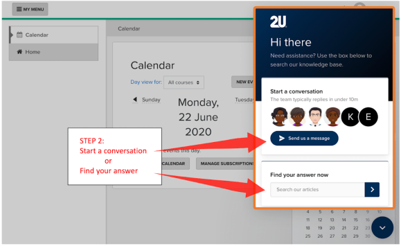 Please contact us with any questions via our chat feature on the Online Campus. Click the chat icon within the Online Campus and follow the prompts so that your questions can be answered by the appropriate team within 24 hours. You can also reach your to your assigned Course Advisor with any questions!